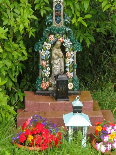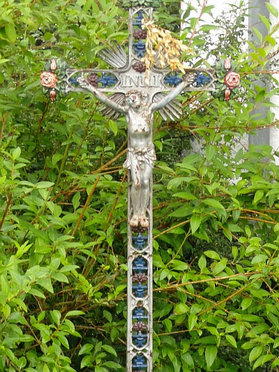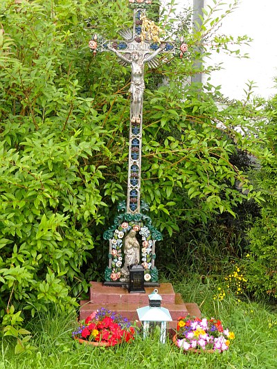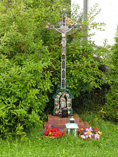 Das ehemalige Grabkreuz, wurde auf seinem Grundstück, hinter dem Haus an der Straße aufgestellt. Es steht auf drei Sandsteinplatten, der untere Teil Rosenmadonna im Rosenkranz, nach oben mit Blumen verziert. Am Oberen Kreuz, ein Eiserner Corpus, ebenfalls mit Blumen verziert. Das Kreuz wurde vom Besitzer 2008, nach einer Renovierung aufgestellt und hat einen schönen Platz hinter dessen Haus gefunden.