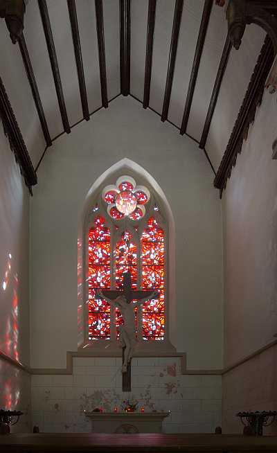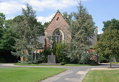Neugotische Friedhofskapelle mit Leichenhalle, 1870, an der Chorseite Bronzekruzifix, 1917 von W. S. Resch, München. [1]