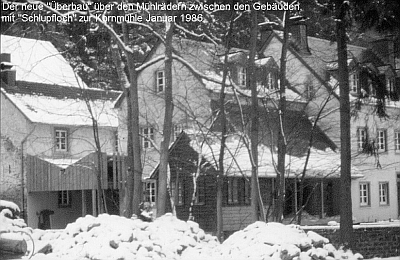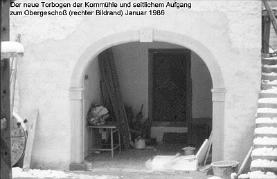 Das im Kern sicher ältere Mühlengebäude nördlich der Stallungen wurde im 19. Jahrhundert weitgehend umgebaut und nach dem Zweiten Weltkrieg aufgestockt. Die Überwölbung des Mühlgrabens zwischen Stall- und Mühlengebäude erfolgte im frühen 20. Jahrhundert. Die 1984-86 vorgenommenen, eingreifenden Renovierungsarbeiten haben von allen Gebäuden nach völliger Auskernung nur das rohe Mauerwerk übrig gelassen, teilweise Erhöhungen die Proportionen der Baukörper verändert.