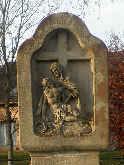 Der Bildstock zur Erinnerung an diesen Mord stand zunächst an einer anderen Stelle, wurde aber durch die Straßenveränderung auf diese kleine Anhöhe versetzt.
