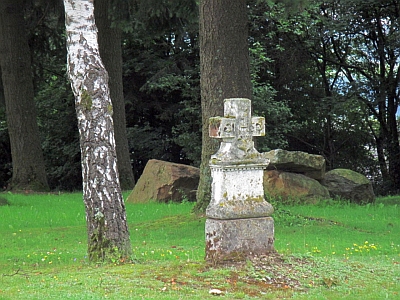 An der Landesstraße 143 am Ortsausgang gegenüber dem Friedhof: ehemaliges Grabkreuz; Schaftkreuz, bezeichnet 1831. [1]