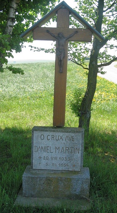 [...] Auf der Anhöhe steht bei einer Ruhebank auf einem Steinsockel ein Holzkreuz, das Fliegerkreuz. Die Inschrift auf dem Sockel lautet: