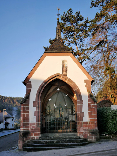 Katholische Linkenbachkapelle; neugotische Marienkapelle, sandsteingegliederter Putzbau mit Dachreiter, 1905 auf den Fundamenten eines 1805 erstmals erwähnten Vorgängerbaus errichtet. [2]