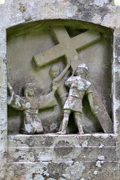 Die 14 Stationen des Kreuzweges, die der Wißmansdorfer Bildhauer Franz-Josef Leisen 1931 schuf, haben eine hohe Kunsthandwerkliche Qualität. Der Bedeutung der zwölften Station wird durch ihre Größe Rechnung getragen. Am Beginn des Kreuzweges steht eine Engelsfigur aus dem 19. Jahrhundert von einem Grabmal. Der Sockel ist nicht zugehörig. [1]