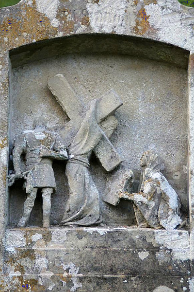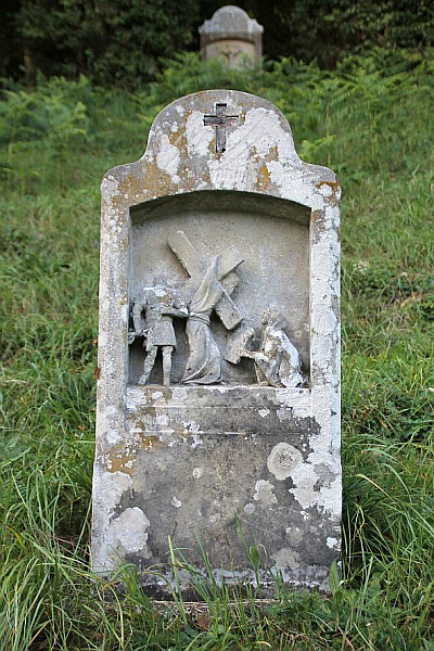 Die 14 Stationen des Kreuzweges, die der Wißmansdorfer Bildhauer Franz-Josef Leisen 1931 schuf, haben eine hohe Kunsthandwerkliche Qualität. Der Bedeutung der zwölften Station wird durch ihre Größe Rechnung getragen. Am Beginn des Kreuzweges steht eine Engelsfigur aus dem 19. Jahrhundert von einem Grabmal. Der Sockel ist nicht zugehörig. [1]