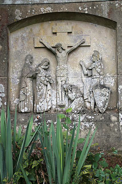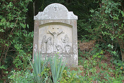 Die 14 Stationen des Kreuzweges, die der Wißmansdorfer Bildhauer Franz-Josef Leisen 1931 schuf, haben eine hohe Kunsthandwerkliche Qualität. Der Bedeutung der zwölften Station wird durch ihre Größe Rechnung getragen. Am Beginn des Kreuzweges steht eine Engelsfigur aus dem 19. Jahrhundert von einem Grabmal. Der Sockel ist nicht zugehörig. [1]