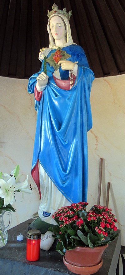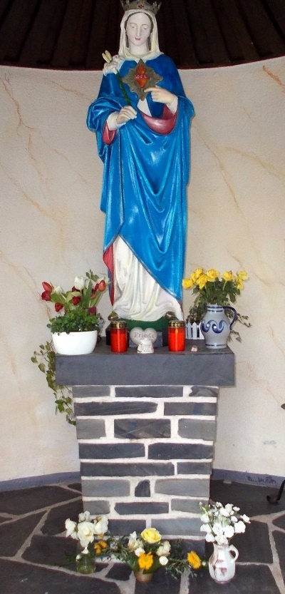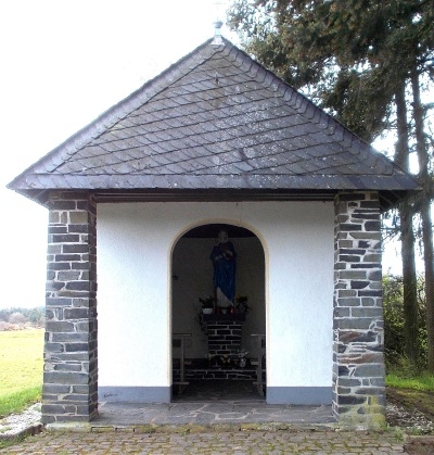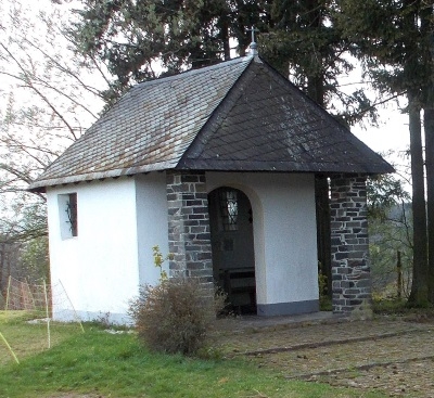 Auf dem 377m hohen Scheitelpunkt des Verbindungsweges zwischen Naurath und Föhren, wenige Schritte von drei wetterfesten Fichten, die in ihrem Schatten "das Kreuzchen" bergen, entstand im Laufe eines Jahres ein kleines aber schmuckes Marienkapellchen. Weithin leuchtet das weiß verputzte Mauerwerk in den dunklen Kranz der Wälder ringsum. Schiefer ist das charakteristische Baumaterial vom Bodenbelag bis zu den auf zwei Vierkantsäulen vorgezogene Dach.