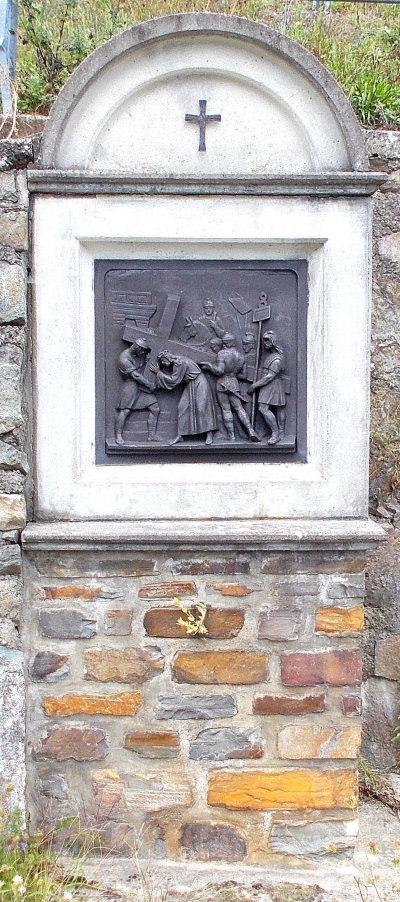 Nördlich der Ortslage an einem Weinbergsweg: Kreuzweg; 12 Stationsbilder, gusseiserne Relieftafeln, um 1860/70. [1]