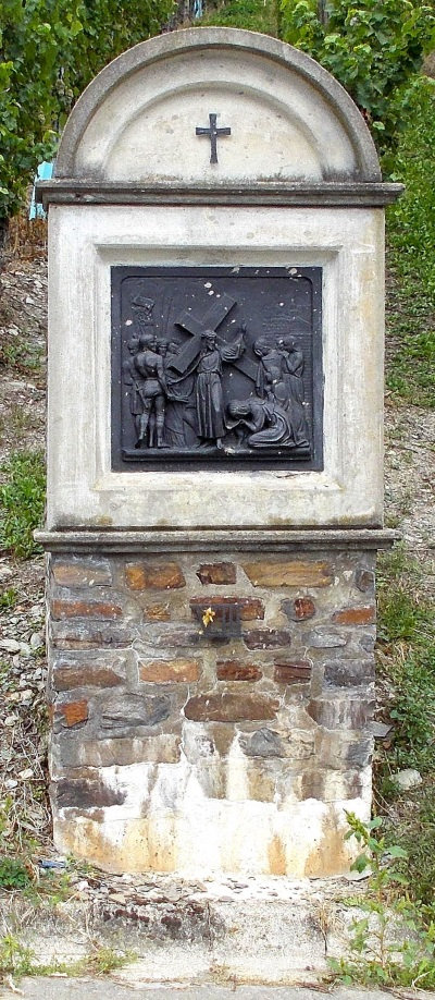 Nördlich der Ortslage an einem Weinbergsweg: Kreuzweg; 12 Stationsbilder, gusseiserne Relieftafeln, um 1860/70. [1]