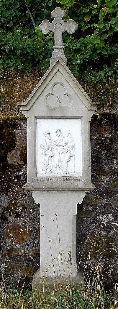 Südöstlich der Ortslage an einem Weinbergsweg: Kreuzweg; 14 neugotische Kreuzwegstationen, Bruchstein, bezeichnet 1897. [1]