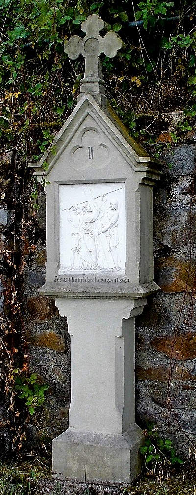 Südöstlich der Ortslage an einem Weinbergsweg: Kreuzweg; 14 neugotische Kreuzwegstationen, Bruchstein, bezeichnet 1897. [1]