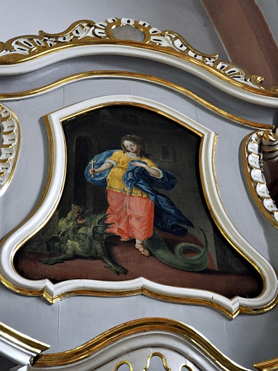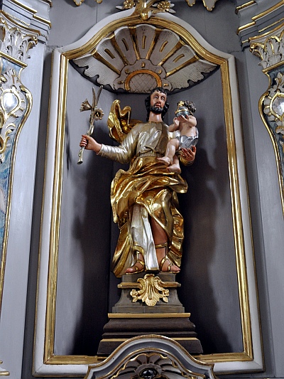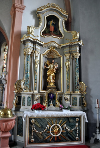 Der rechte [Seitenaltar] mit einer Figur des heiligen Joseph, oben ein Gemälde, darstellend die heilige Magdalena.[1]