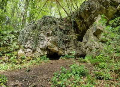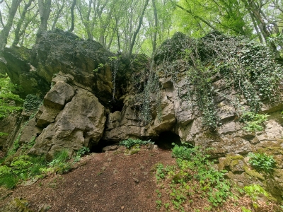 Tor zur Unterwelt (Vom Leben im Dunkeln) steht trefflich auf dem Schild der Prümer Land Tour vor dem Aufgang zur Hohlley. Die größte der Höhlen führt etwa 12 m in den Berg hinein, doch das sind Kindheitserinnerungen. Bei der letzten Exkursion haben wir auf ein betreten der Höhle verzichtet. Wir bitten darum, nicht in diese Höhlen hineinzuklettern, denn sie bieten, speziell im Winter, Fledermäusen Unterschlupf und wir nehmen an, dass niemand an einem Biss der Kreuzspinne interessiert ist, die hier ein natürliches Refugium hat. Da es in diesen Höhlen praktisch kein Licht gibt, sind im Inneren auch kaum Grünpflanzen zu finden. Lediglich einige Moose und Flechten beschränken ihren Wuchs auf den Eingangsbereich.