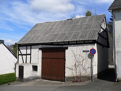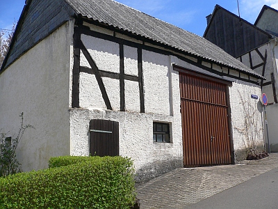 Die Scheune ist mit eines der ältesten Gebäude Manderscheids, teilweise in Fachwerk. Links von der Scheune waren nach dem 2. Weltkrieg noch Reste der ehemaligen Stadtmauer zu erkennen, die leider nicht erhalten wurde. Unmittelbar anschließend an die Scheune stand das Stadttor "Buurport" (Quellpforte "Buur " (Born, Quelle ) - "Port" (Pforte, Tor) benannt nach einer Quelle, die cirka 200 Meter unterhalb in "Kiesel" entsprang. [1]