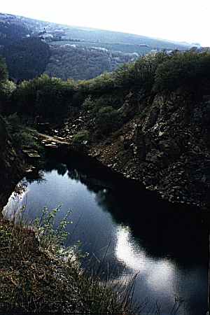 Den schönsten Blick auf den See und die imposanten Steinbrüche hat man von der Strasse Trier-Saarbrücken kurz vor Pellingen (bei der Abzweigung in Richtung Pluwig. [1]