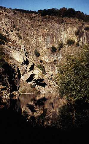 In dem noch bis 1972 Diabas, hauptsächlich für den Strassen- und Gleiskörperbau abgebaut und verarbeitet wurde. Bei diesem basaltähnlichem harten Gestein, das auch an anderen Stellen in der näheren Umgebung vorkommt, handelt es sich um aufsteigendes Magma aus dem Erdinneren, das im Schlot, beziehungsweise in Gängen stecken blieb und nahe der Oberfläche erstarrte. Es unterscheidet sich von Basalt durch sein gröberes Korn und seine hellere Farbe. Im ehemaligen Steinbruch befindet sich heute der sogenannte Silbersee. Aus Sicherheitsgründen - Hangrutsch und Steinschlag - ist das Baden darin jedoch verboten.