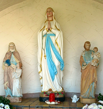 Eine Statue der Lourdes-Madonna steht auf dem Altar. [1]