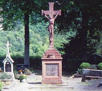 Friedhof Manderscheid, auf dem Hauptweg, ca. 20 Meter vom Eingang entfernt.
