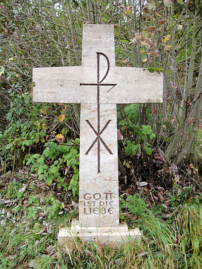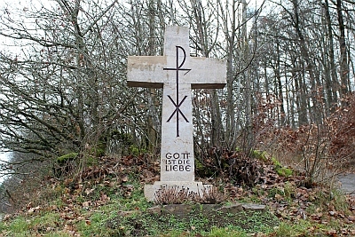 Auf einem westlichen Höhenzug des Islek zwischen dem Mühlbach- und dem Mandelbachtal liegt Manderscheid eingefasst von Feldern und Wiesen. Der Ort nahe Waxweiler ist traditionell landwirtschaftlich geprägt. Zu ihm gehören auch Manderscheiderhof und die Heilhauser Mühle. Neben einer kleinen Lourdesgrotte und einem Bildstock beherbergt Manderscheid mehrere Wegekreuze. Unter ihnen befindet sich das unter Denkmalschutz stehende barocke Schwarzkreuz aus dem 18. Jahrhundert. Das vermutlich jüngste Kreuz steht direkt an der Kreisstraße 140 an einem Hang nahe dem Kobenhof. Es ist aus hellem Stein gebaut und so groß, dass Autofahrer es gut sehen und auch seine kurze prägnante Inschrift, ein Satz aus dem ersten Johannesbrief der Bibel, lesen können: Gott ist die Liebe. Das Kreuz ist ein Zeichen des Glaubens und der Hoffnung, die die ganze Welt, besonders in der anhaltenden Corona-Pandemie, derzeit sehr dringend benötigt. [2]