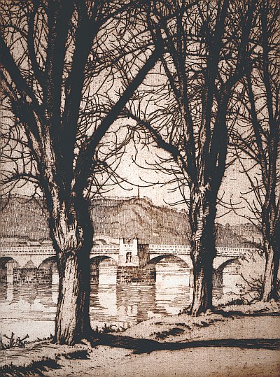 Bild 3: Radierung von Fritz Quant: "Römerbrücke" in Trier, Maße: 223 mm x 168 mm, 1920 oder früher.