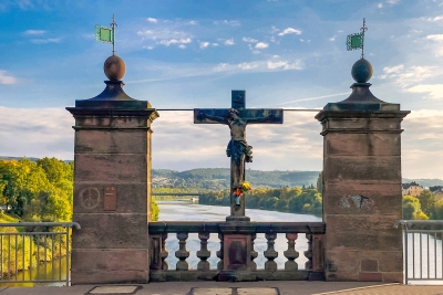 1689 wurde die Brücke von französischen Truppen gesprengt, 1716-18 erneuerte der kurfürstlich-trierische Hofzimmermann Johann Georg Judas die Wölbung. Bei dieser Gelegenheit errichtete man auf dem fünften Pfeiler von Westen ein Kruzifix und eine Statue des heiligen Nikolaus. 1806 brach man das westliche Brückentor ab, 1869 folgte das östliche. 1931 wurde die Brücke verbreitert und erhielt die heutigen, auskragenden Fußgängerstege. [1]