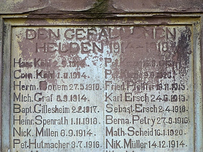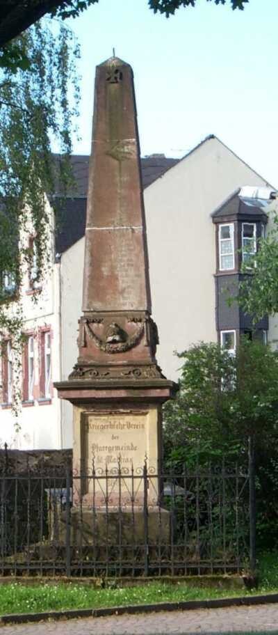 Obelisk für die Gefallenen und an den Folgen des Krieges gestorbenen Soldaten des 1870 / 71er Krieges aus der Pfarrei Sankt Matthias. Initiator für die Errichtung war der 1885 gegründete "Vereinigte Krieger Wehrverein der Pfarrgemeinde Sankt Matthias". Der Entwurf stammt vom Trierer Bildhauer Caspar Weis, der auch das Denkmal des "Trierer Kriegervereins" auf dem Hauptfriedhof geschaffen hatte.