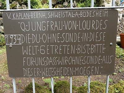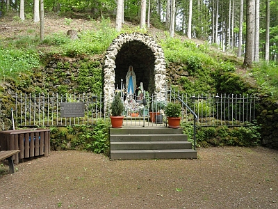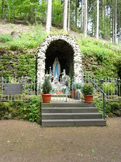 Lourdesgrotte im Wald gegenüber dem Sägewerk.