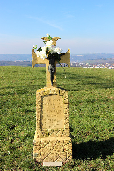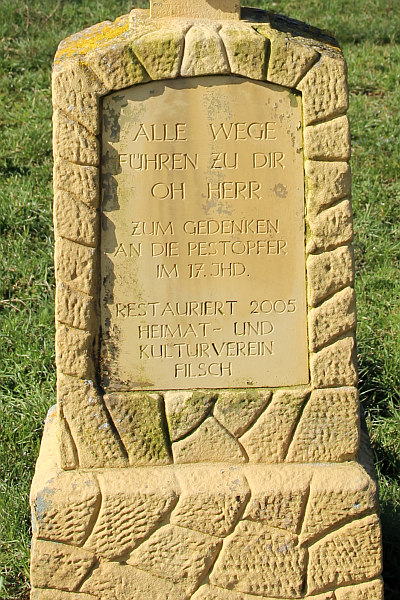 Das Denkmal erinnert an die Filscher Opfer der Pest, die im 17. Jahrhundert besonders heftig in dem Ort wütete, zuletzt 1635/36. Ursprünglich stand auf dem Galgenberg ein hölzernes Kreuz, das später durch das steinerne Exemplar ersetzt wurde. Dem Standort weit oberhalb von Filsch auf einer der höchsten Erhebungen im Stadtgebiet (386 Meter) und auf heutiger Irscher Gemarkung liegt ein alter Brauch zugrunde. In früheren Jahrhunderten pilgerten die Filscher an Christi Himmelfahrt nach Gutweiler. Ihr Weg führte über den Galgenberg. [1]