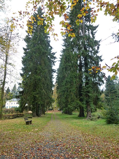 1933/34 von Gartenbaudirektor Gottfried Rettig angelegter 8000 m² großer Rosengarten (mit Anlage des Rosengartens in Nells Ländchen sukzessive Aufgabe als solcher seit 1956); vom Straßenniveau in zwei Stufen tiefer gelegtes, von Hecke eingefasstes Gelände mit halbhohen Toren (Schmiedeeisengitter zwischen Sandsteinpfeilern); auf der oberen Terrasse zwei barocke Götterfiguren (heute Kopien) in hohen Hainbuchennischen, nächste Stufe erschlossen von seitlichen Treppen; Laufbrunnen mit begleitenden Sitzbänken, hufeisenförmig angeordnet einzelne Heckentore; Laubengänge; Treppenstufen zum unteren Parterre; nördlich angrenzend Fichtenallee (Seufzerallee). [1]