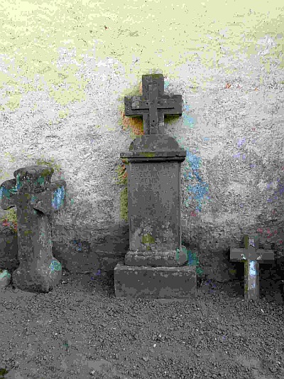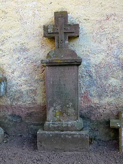 Kleines Sandsteinkreuz mit einer noch gut lesbaren Inschrift, wer dort 1844 begraben wurde. [1]