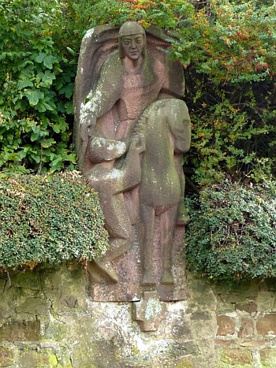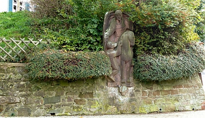 Standbild aus rotem Sandstein in der Stützmauer vor dem Forstamt Hermeskeil-West. [1]