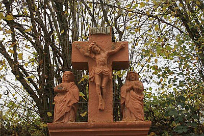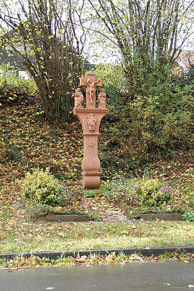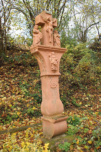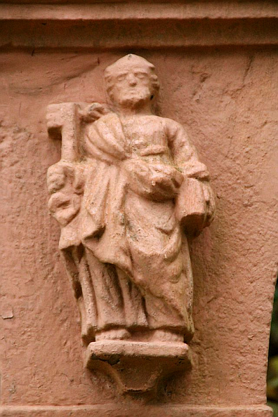 Kreuzigungsbildstock, barock, mit Relieffigur des heiligen Petrus, wohl um 1720. [1]