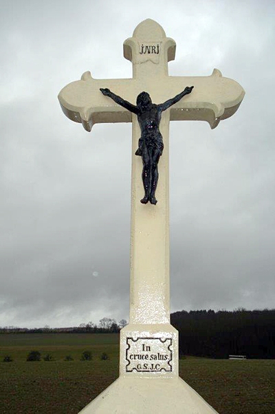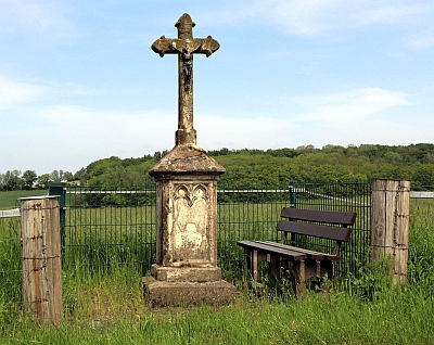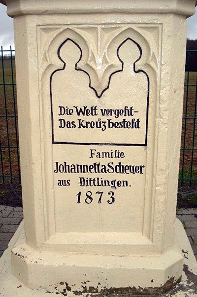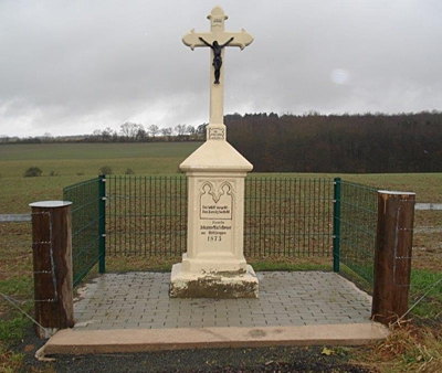 Am Weg von Merzkirchen nach Dittlingen steht ein neu renoviertes Steinkreuz, was die Aufschrift trägt: