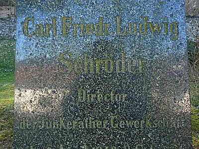 [...] Leider verstarb Herr Hüttendirektor Schröder am 1. 7. 1896 an einem Herzschlag mit 53 Jahren. Nachdem er auf dem Begräbnisplatz neben der Kirche in Jünkerath mit besonderer Genehmigung beigesetzt wurde, hieß es 1897 nunmehr mit Blick auf die weite Entfernung des bis jetzt benutzten Friedhofes und die ungünstige Lage desselben auf der Höhe bei Glaadt, das Kirchengrundstück in Jünkerath endgültig als Begräbnisplatz zu benutzen und um die Genehmigung der Behörden dafür nachzusuchen. Am 12. November 1899 wurde für den Jünkerather Friedhof eine Ordnung ausgearbeitet und beschlossen. 1917 wurde von Herrn Pfarrer Best auch in Jünkerath ein Kindergottesdienst eingerichtet. [...]