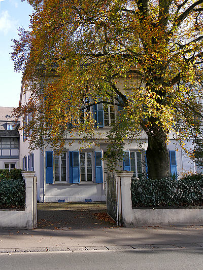 Wohnhaus mit Vorgarten; spätklassizistischer Krüppelwalmdachbau, 1872/75. [1]