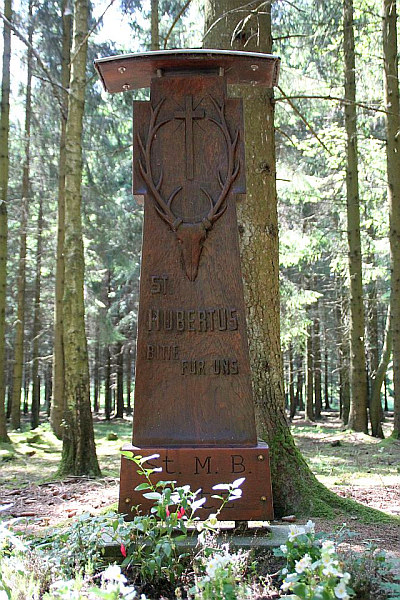 [...] An diesem Tag wurde am Nachmittag das Hubertuskreuz im Wald in der Nähe der Künstlerkolonie Weißenseifen in Rheinland-Pfalz erreicht. Das Hubertuskreuz hat bei den Wallfahrten der SMB-Titz einen besonderen Platz. Hier werden bei der Frühjahrswallfahrt und nun auch bei der Herbstwallfahrt die Erstpilger und Jubilare geehrt. Dies ist immer ein ergreifender Augenblick für alle Pilger. [2]