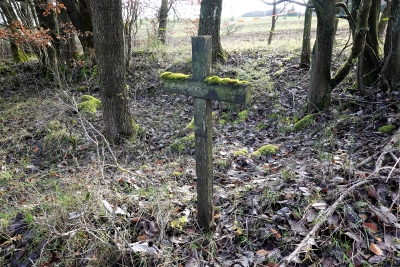 Schlichtes Holzkreuz ohne Inschrift. Eines von ursprünglich sieben Kreuzen, von denen nur noch vier erhalten sind. Sie wurden in gewissen Abständen eines Waldweges aufgestellt, der von der Gemeinde Gefell (bei Kelberg) aus zur Hilgerather Kirche führte. Gefell gehörte früher zum Kirchspiel Hilgerath. Starb jemand in Gefell, dann wurde der/die Tote über diesen Weg zum Kirchhof Hilgerath gebracht. An den Kreuzen hielt die Trauergemeinde an, um zu beten. [1]