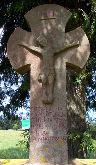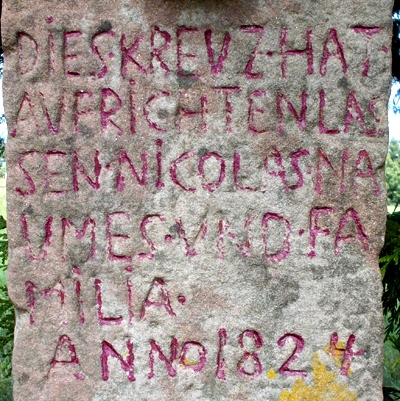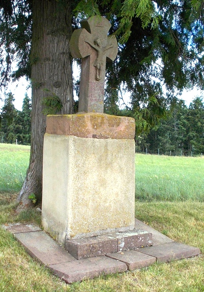 Pfeilerschaftkreuz, südlich der Ortslage am Sportplatz gelegen, bezeichnet 1824.