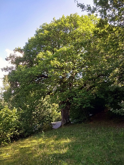 Quercus sp.; zwischen 1600 und 1700 gekeimt; 16 m hoch bei 3,85 m Brusthöhenumfang und 18 m Kronendurchmesser [1]