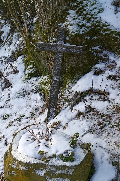 Neben dem Heiligenhäuschen liegt noch eines der 7 Kreuze, die früher in Gefell vorhanden waren. Die Kinder des Ortes beteten an diesen Kreuzen wenn jemand im Sterben lag. [1]