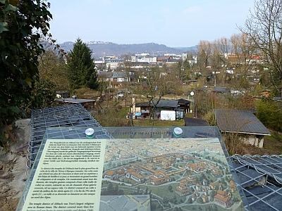 Der Tempelbezirk im Altbachtal war die umfangreichste Kultstätte der Stadt Trier in römischer Zeit. Das über 5 Hektar große Areal, von dem bisher nur ein Siebentel ergraben wurde, war mit einer Vielzahl von Tempeln und Schreinen bebaut. Überwiegend wurde der gallische Umgangstempel bevorzugt, bei dem die Celle mit einem überdachten Umgang, einem Hohlraum gleich, umbaut war. Dieser Kultbezirk bestand von der Mitte des 1. Jahrhunderts bis ins ausgehende 4. Jahrhundert und ist in seiner Größe und Bedeutungsvielvalt einmalig nördlich der Alpen. [1]
