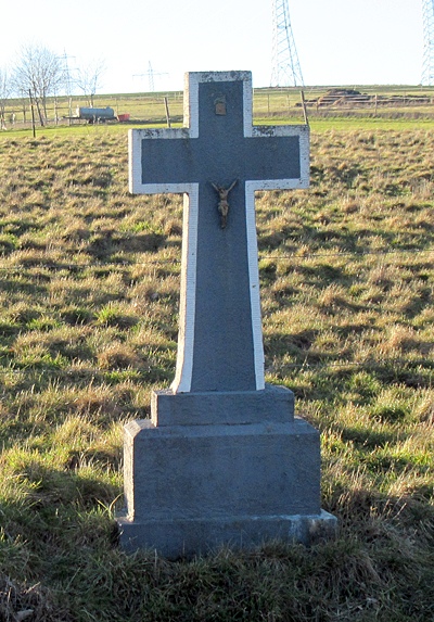 Das Kreuz erinnert an einen tragischen Traktorunfall am 6.3.1958 der Franzenheimer Eheleute Matthias und Elisabeth Terres, die dabei starb. Ihr schwer verletzter Ehemann ließ später dieses Kreuz zum Andenken an seine Frau errichten. [1]