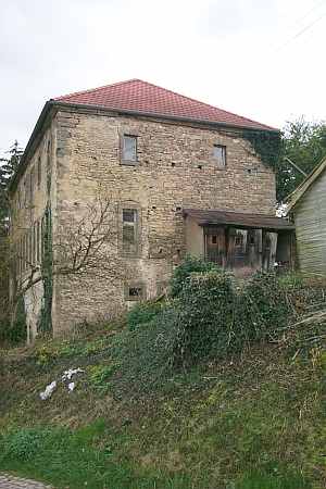 Die Schleiferei am Nordhang des Glashüttengeländes gibts sich durch die dichte Folge hochrechteckiger Fenster als industrielles Fertigungsgebäude zu erkennen. Die Technische Einrichtung, Schleif- und Schneidebänke fehlen seit der Umnutzung als Wohnung. An den östlichen Giebel leht sich die Ruine des Schutzhäuschens für das gewaltige Wasserrad, das die Schleif- und Schneideanlagen antrieb. [1]