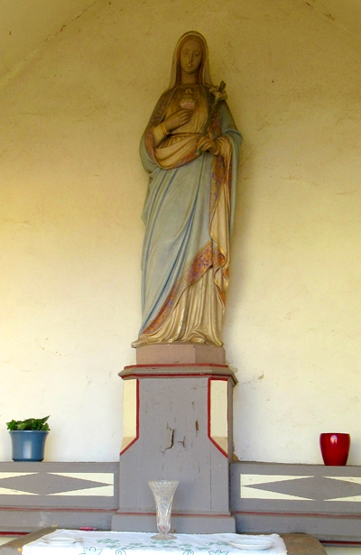 Innenraum versehen mit Altartisch und Muttergottesstatue.