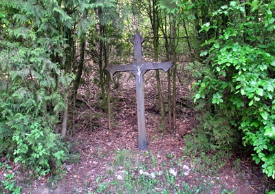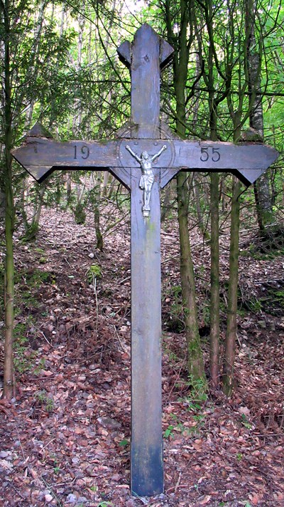 Hohes Holzkreuz mit gusseisernem Korpus. Am Querbalken mit Jahreszahl 1955 bezeichnet. [1]