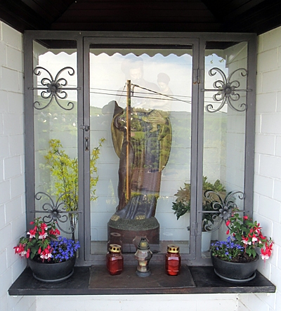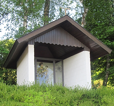 Kapelle am Waldhang, rückwärtig Kapellenstraße gelegen. In Nische hinter Glas Josef-mit-Jesuskind-Statue. [1]