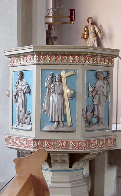 1839-41 errichteter Bau in klassizistisch geprägter Neugotik. Neben dem Portal eingemauert ein kleines gotisierendes Kreuzigungsrelief von 1671. [1]