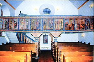 Der Innenraum der kleinen Kirche, die heute der Trarbacher Pfarrer bedient, wurde 1983 restauriert und zeigt sich nunmehr in ihren ursprünglichen Farben.