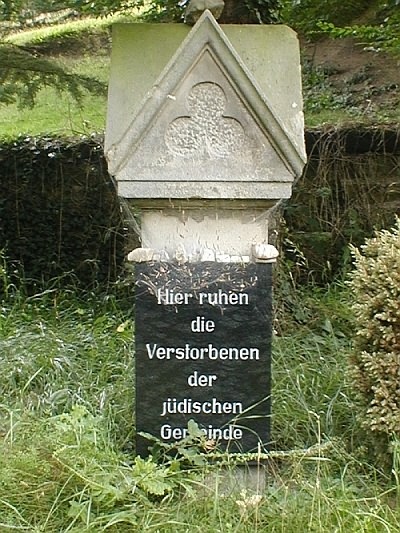 Beerdigungsteilnehmer einen Nagel in den Schreindeckel. Heute besteht der jüdische Friedhof noch als eine mit Edeltannen bewachsene Rasenfläche. Inmitten des eingefriedeten Areals steht ein Gedenkstein, eine behauene Eingangssäule vom Vorgarten der früheren Synagoge. Die Ortsgemeinde pflegt die Rasenfläche des Friedhofs. Eine Fundgrube wäre die Südmauer, in deren unteren Gesteinslagen über zwanzig Grabsteine sichtbar flach eingemauert sind, die die Namen der Verstorbenen preisgeben würden.