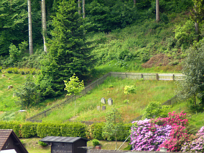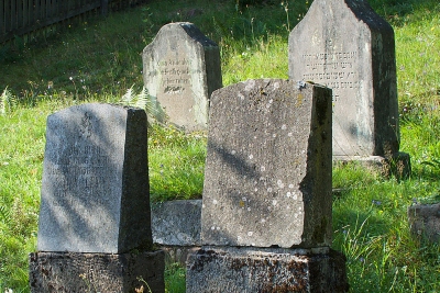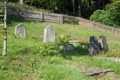 1900 angelegt, umfriedetes Areal, vier Grabsteine ab 1914 und zahlreiche Fragmente. [1]